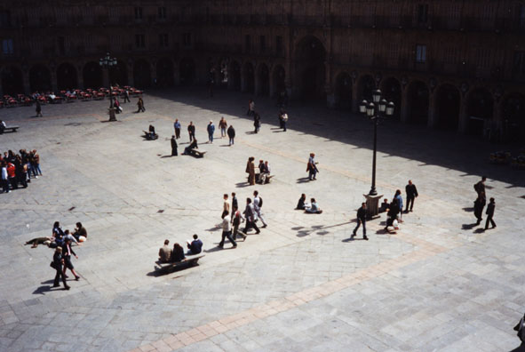 Salamanca, student city with a lovely centre. It has two cathedrals, and the